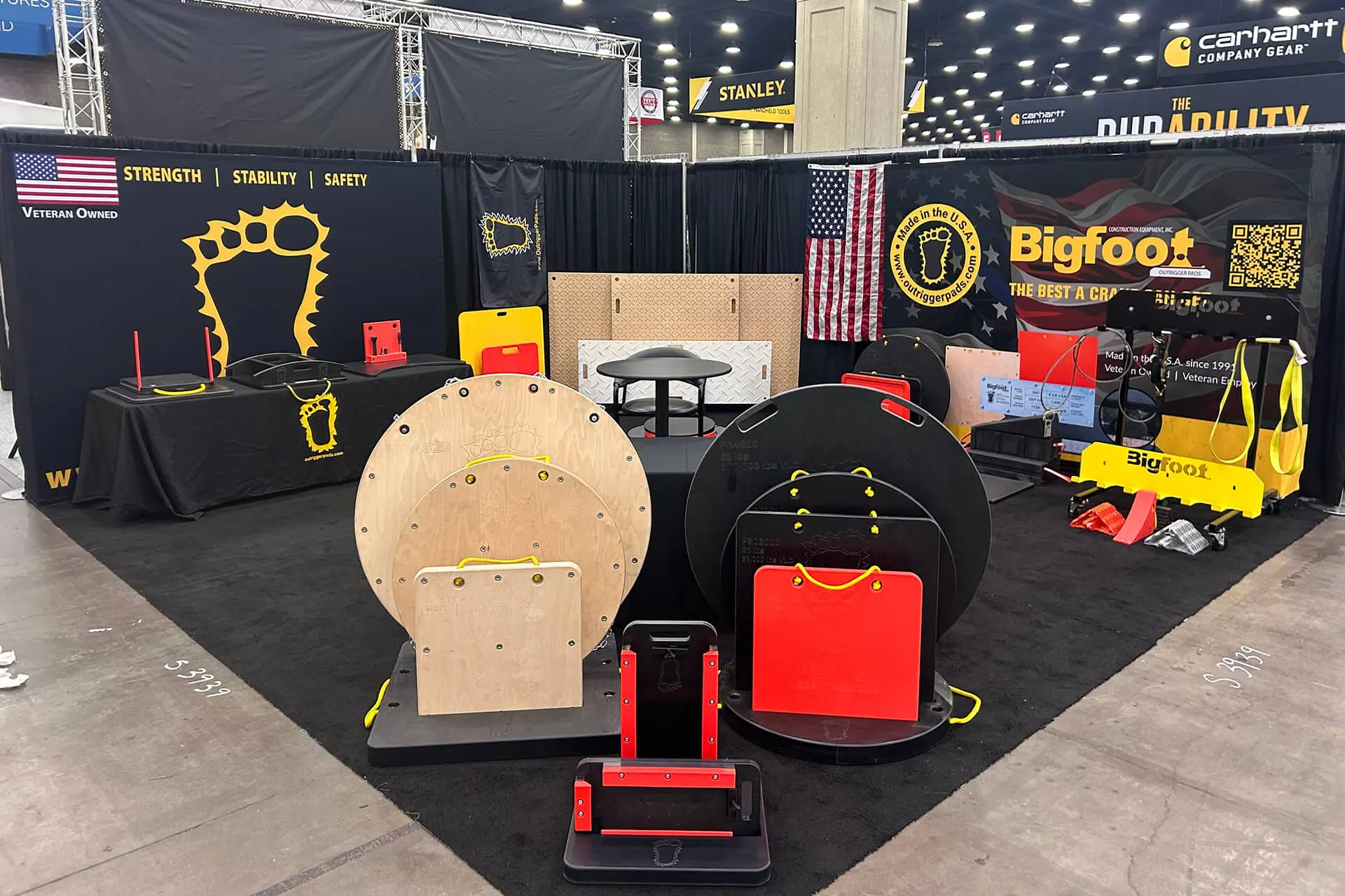 Bigfoot utility tradeshow expo booth of outrigger pads and other American Made outrigger products